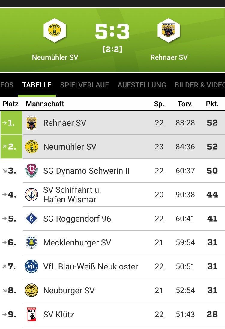 Der Sieg vom Neumühler SV hat den Titelkampf und damit verbundener Aufstieg noch spannender gemacht. Wir vom NSV können jedoch nur hoffen, das die Mannschaften vom der SV Schifffahrt Hafen Wismar und die SG Dynamo Schwerin II noch Punkte lassen.